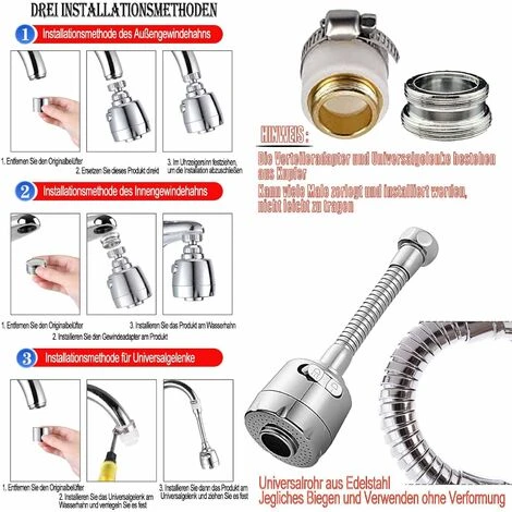 2. 【Zubehörgewinde sind aus Kupfer】 Unsere Zubehörgewindekonverter und Universalgelenke sind aus Kupfer. Im Vergleich zu Kunststoffgewinden ist es stabiler und kann während der Installation und Verwendung nicht leicht beschädigt werden.