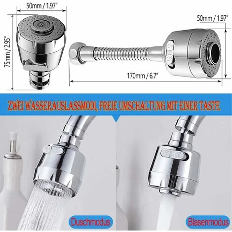 1. 【Zwei Wasserauslassmodi können einfach umgeschaltet werden.】 Dieser Wasserhahnbelüfter verfügt über zwei Wasserauslassmodi: Belüftungsstrahl und Duschstrahl, die bei Bedarf per Knopfdruck umgeschaltet werden können. Die Luft wird mit dem Sprühwasser gemischt, um das Wasservolumen zu erhöhen und Wasser zu sparen.