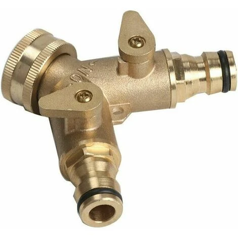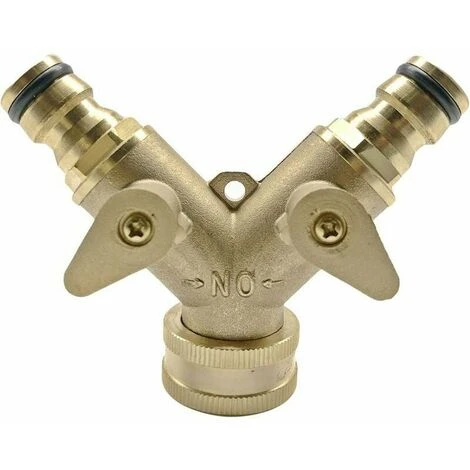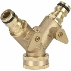 Stabiler, hochwertiger 2-Wege-Y-Verteiler mit massiven Absperrventilen und zwei Anschlüssen für das Stecksystem.