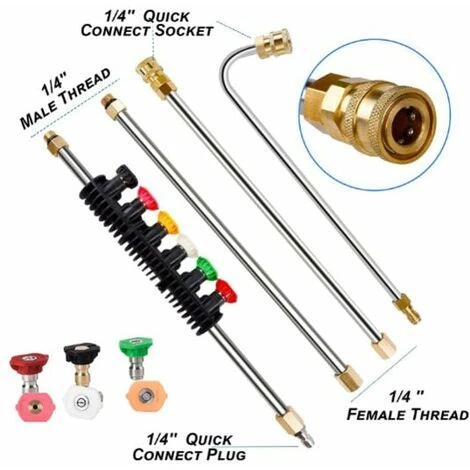 Das universelle Zauberstab-Set eignet sich ideal als Erweiterung oder Ersatz. Jeder Zauberstab misst etwa 15 Zoll lang. Der Dachrinnenreinigungsstab misst bei Bedarf 12 Zoll für eine Gesamtlänge von ca. 8,5 Fuß / 102 Zoll. Ideal als Erweiterung oder Ersatz Breites Anwendungsspektrum: geeignet für Hochdruckreinigungspistolen, Wasserbesen, Chassisreiniger, Reinigungsbürsten. Es kann auch im Freien verwendet werden, z. B. in Einfahrten, Seiten, Terrassen, Dächern und Ihrem Auto usw. Enden: Schnellkupplung mit 1/4-Gewinde. Einfaches Anschließen und Trennen von Hochdruckreinigerpistolen usw. Aus hochwertigem Edelstahl. Arbeitsdruck bis zu 4000 PSI. 6 Düsenspitzen: Erweiterte Ersatz-Sprühpistole für Hochdruckreiniger mit 6 hochwertigen Düsenspitzen mit 1/4 Schnellverschlusskappen für eine Vielzahl von Anwendungen: Seife, 0 Grad, 15 Grad, 25 Grad, 40 Grad, 65 Grad, Sie können sie nach Ihren tatsächlichen Bedürfnissen verwenden.